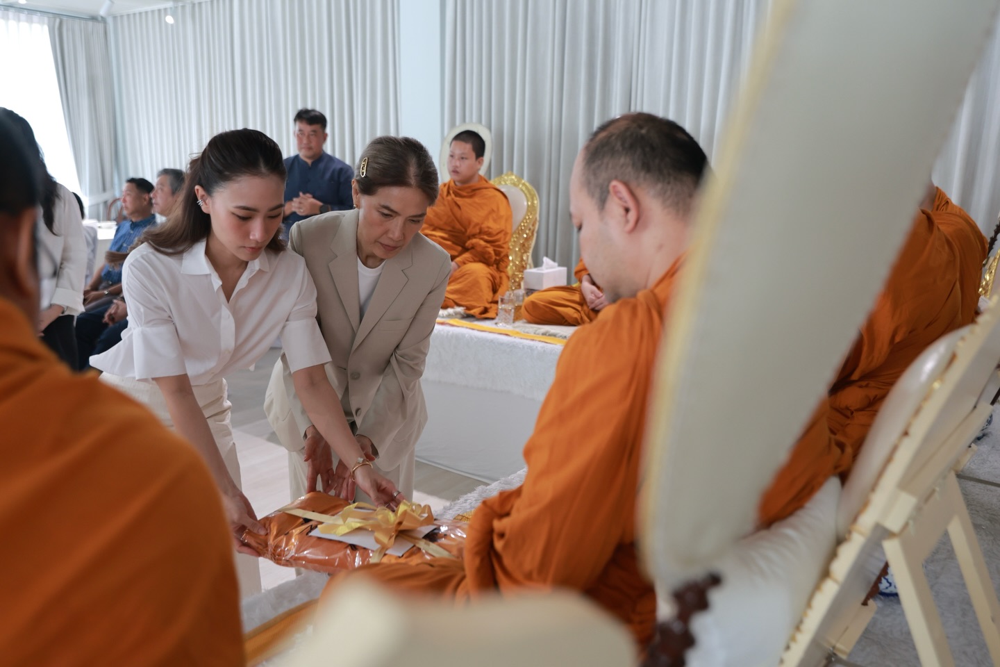 นอกจากนี้ยังมีโมเมนต์ชวนใจฟู เมื่อได้เห็นภาพครอบครัวที่อบอวลไปด้วยความรัก ทั้งคุณแม่ ตู่ นันทิดา และอดีตคนรัก เป๊ก เศรณี ที่มาร่วมพิธีด้วยกัน