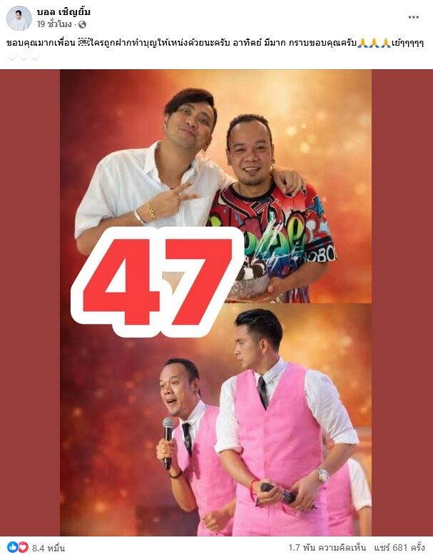 แห่โพสต์เฮกันลั่นหมด เพื่อนๆในวงการตลก เพื่อนๆในรายการ ก็มาดิคร้าบ คนรอบตัวต่างก็รับโชคจาก เหน่ง เหม่งจ๋าย เลขอายุ 47 เข้าตรงๆ รางวัลเลขท้าย 2 ตัว ทำเอาทั้ง บอล เชิญยิ้ม , ยูริ ภรรยา บอล , นาย คอมเมเดี้ยน , ท๊อฟฟี่ สามบาทห้าสิบ , แจง ปุณณาสา เมีย แจ๊ส ชวนชื่น เป็นต้น โพสต์รับทรัพย์รับโชค ขอบคุณ เหน่ง กันรัวๆ