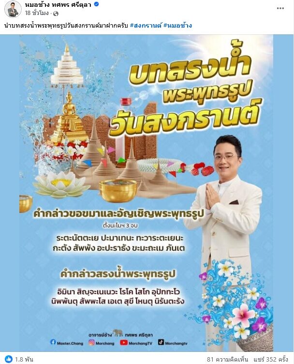 ปีใหม่ไทย 2569 หมอช้าง ทศพร เปิดดวง 12 ราศี เมษายน 2569 ดวงหลังสงกรานต์นี้ราศีไหนจะมีโชคก้อนใหญ่แบบไม่ทันตั้งตัว ดังนี้