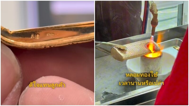 ในคลิประบุว่า ลูกค้ารายหนึ่งนำกระเป๋าที่ซื้อมาจากโกดังญี่ปุ่นในราคา 300 บาท มาตรวจสอบ โดยช่วงแรกยังไม่มั่นใจว่าเป็นทองแท้หรือไม่ ก่อนที่ทางร้านจะทำการตรวจวัดและพบว่าเป็นทองคำแท้ 18K พร้อมย้ำด้วยการตรวจสอบรหัสตอก “K18” อย่างละเอียด สร้างความดีใจให้กับทั้งลูกค้าและผู้ตรวจสอบ