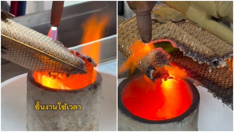 เจ้าของร้าน ได้นำทองเข้าตู้หลอมพร้อมใช้เครื่องวัดเปอร์เซ็นต์ความบริสุทธิ์ ซึ่งลูกค้าสามารถทราบราคาเบื้องต้นได้ทันทีเพื่อใช้ประกอบการตัดสินใจ โดยกระบวนการหลอมใช้เวลาประมาณ 7 นาที