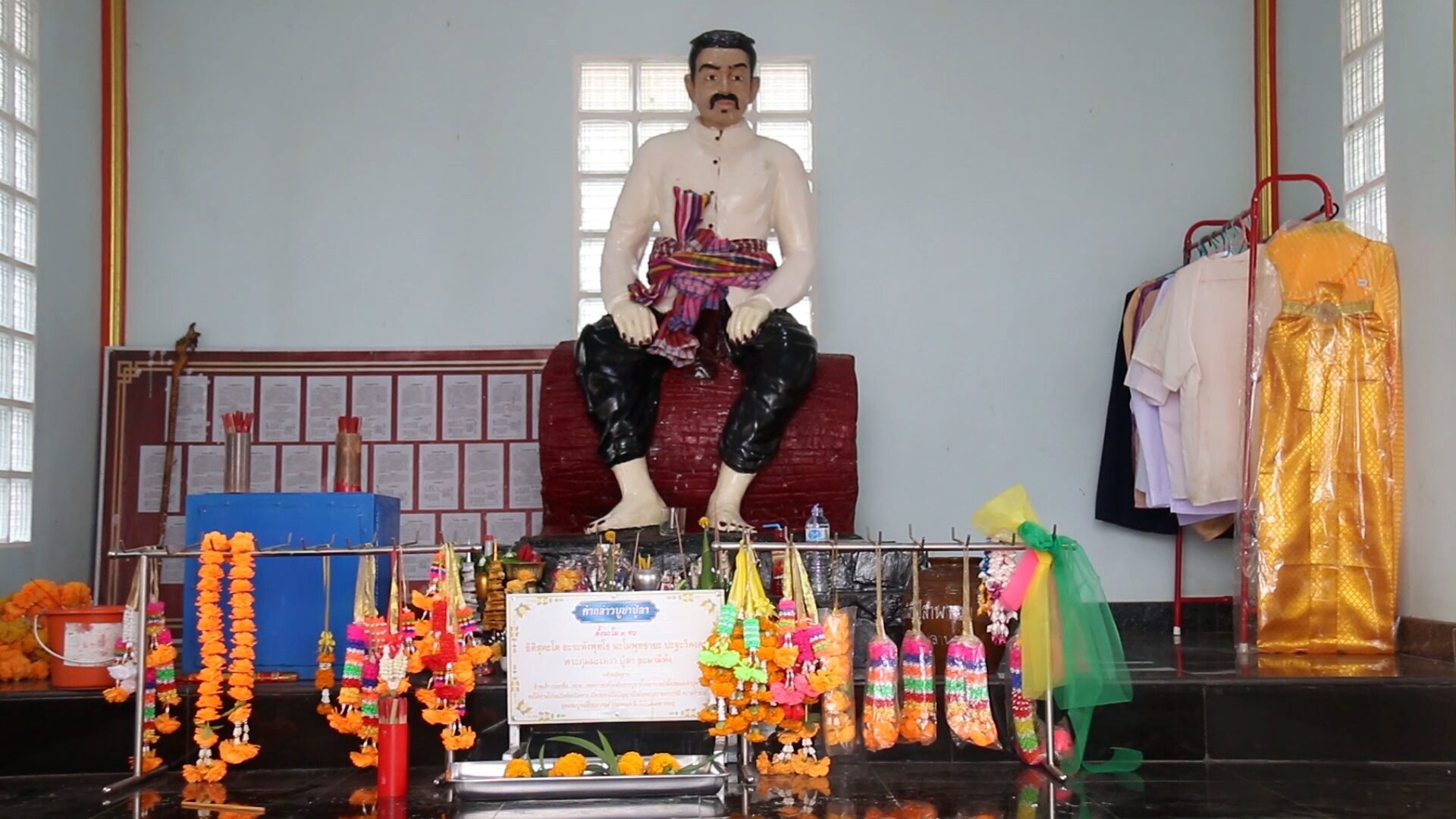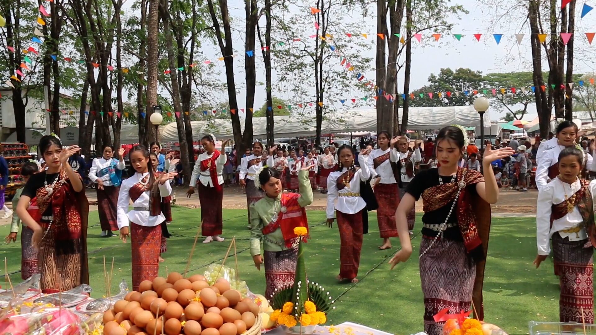 ซึ่งภายหลังพิธีบวงสรวงเสร็จสิ้น จะมีการแจกจ่ายของเซ่นไหว้ให้กับผู้มาร่วมพิธีได้นำไปดื่มกิน เพื่อเป็นการเสริมสิริมงคล แก่ตนเองและครอบครัว