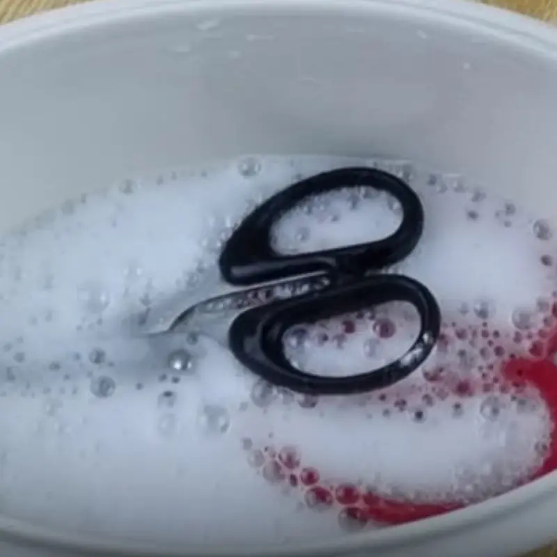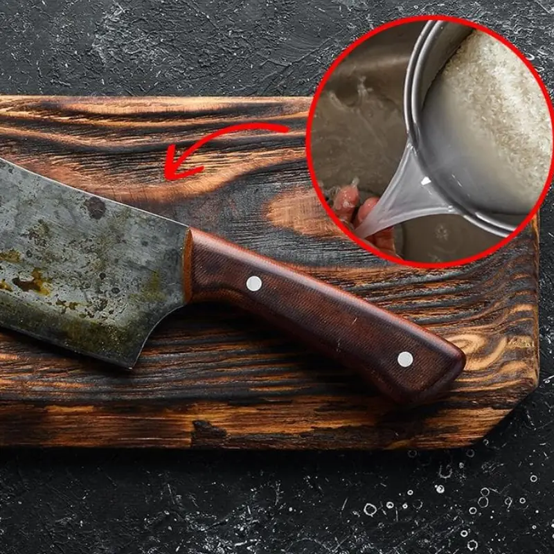 นำมีดหรือกรรไกรที่ขึ้นสนิมแช่ไว้ในน้ำส้มสายชูหรือน้ำมะนาวประมาณ 10–15 นาที กรดธรรมชาติจะช่วยละลายคราบสนิมออกได้อย่างดี