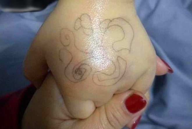 ภาพวาดแปลกๆ บนมือเด็กหญิงตัวน้อย