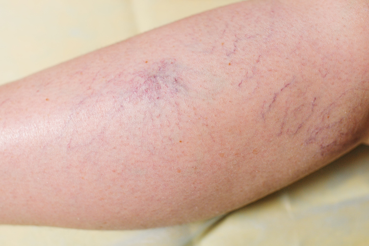 2. เส้นเลือดฝอยแตกเป็นใยแมงมุมบริเวณข้อเท้าและฝ่าเท้า