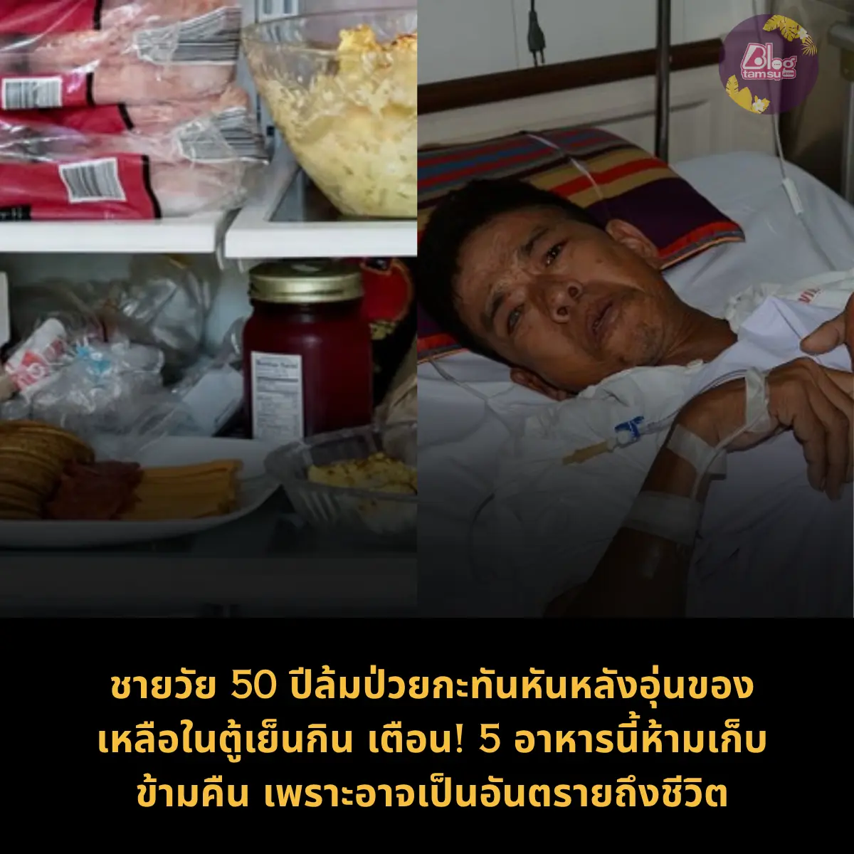 เกิดเหตุชายวัย 50 ปีในจังหวัดหนึ่งต้องถูกนำส่งโรงพยาบาลอย่างเร่งด่วน หลังจากรับประทานอาหารที่เหลือจากเมื่อวานซึ่งเก็บไว้ในตู้เย็นและนำมาอุ่นกินใหม่ในตอนเช้า ผลตรวจของแพทย์พบว่าเขามีอาการอาหารเป็นพิษขั้นรุนแรงและติดเชื้อแบคทีเรียในกระเพาะอาหาร เนื่องจากอาหารบางชนิดไม่เหมาะกับการเก็บข้ามคืน แม้จะผ่านการแช่เย็นก็ตาม