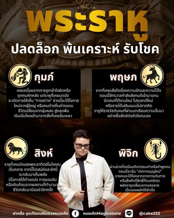 หมอเค้กดลบันดาล เผยถึง ดวงช่วงนี้ พระราหู หนุนนำดวง ปลดล็อก พ้นเคราะห์ รับโชคใหญ่ ประกอบด้วย