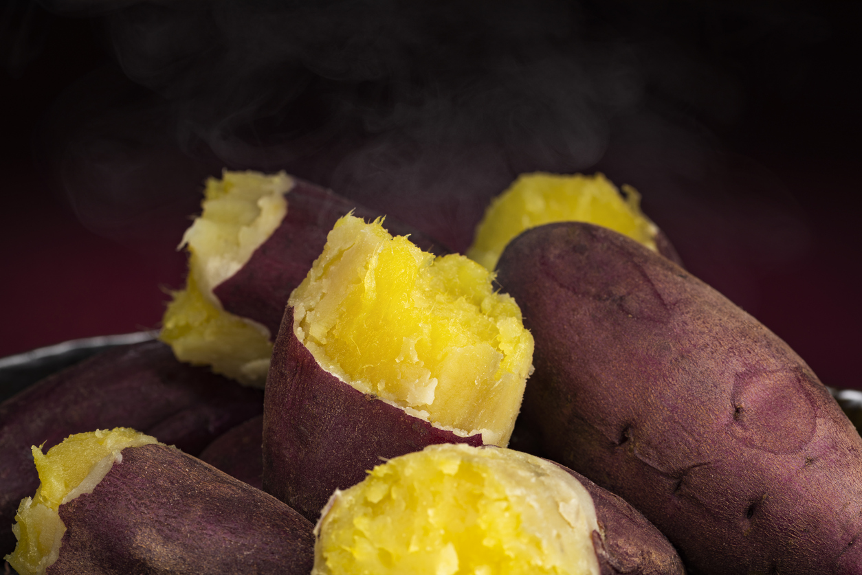 คาร์บจากแป้งธรรมชาติพร้อมไฟเบอร์ วิตามิน A และ C สูง. สารต้านอนุมูลอิสระช่วยลดความเครียดออกซิเดชัน อบทั้งเปลือก ดีกว่าทอด ลดไขมันส่วนเกิน