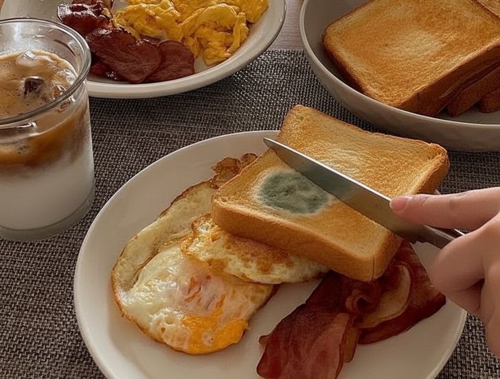อาหารเช้าทั่วไป เช่น ขนมปัง ขนมหวาน ธัญพืช หรือผลไม้ มักเป็นอาหารที่เชื้อราขึ้นได้ง่าย และหลายคนก็มีนิสัยที่ตัดส่วนที่เป็นราทิ้งแล้วกินส่วนที่เหลือต่อ ซึ่งเป็นการประหยัดที่ไม่ถูกต้องอย่างยิ่ง เพราะสปอร์ของเชื้อราจะผลิตสารพิษที่ทำให้เกิดการกลายพันธุ์ของยีน เช่น อะฟลาท็อกซิน (Aflatoxin) และโอคราท็อกซิน เอ (Ochratoxin A)